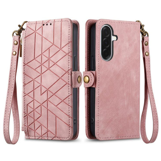 Geometric Zipper Wallet Side Buckle Leather Phone Case, For Samsung Galaxy A56 5G, For Samsung Galaxy A36 5G, For Samsung Galaxy S25 5G, For Samsung Galaxy S25+ 5G