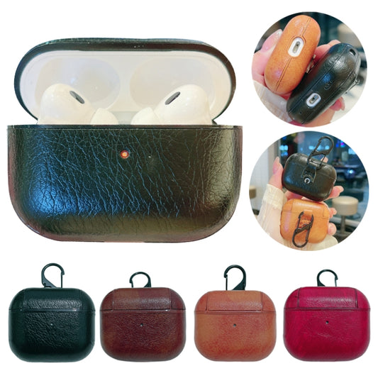 Crazy Horse Texture PU Earbuds Box PC Case with Hook, For AirPods 4