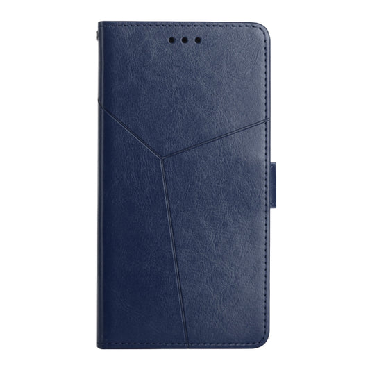 For iPhone 14 Plus Y Stitching Horizontal Flip Leather Phone Case (Blue)