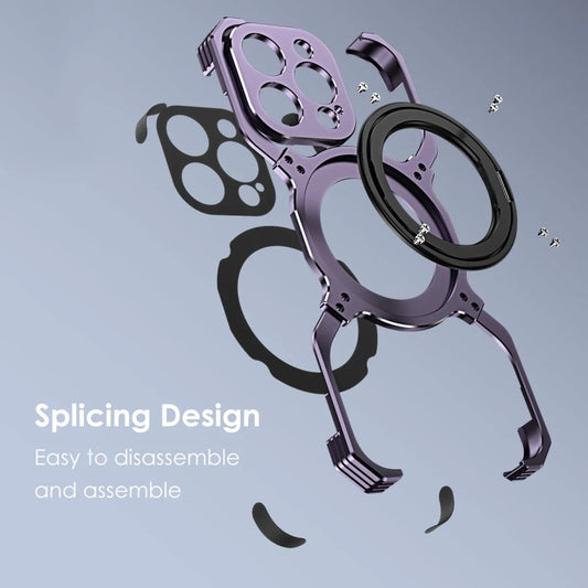 For iPhone 14 Plus Mechanical Arm Borderless MagSafe Holder Metal Phone Case(Black Purple)