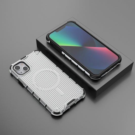 For iPhone 14 Plus Grating Airbag Shockproof MagSafe Frosted Phone Case(Transparent)