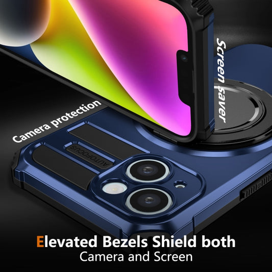 For iPhone 14 Plus Rotating Magnetic Holder Phone Case(Royal Blue)