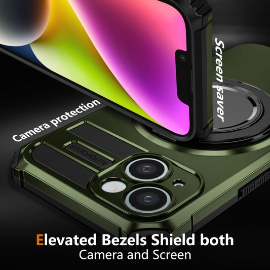 For iPhone 14 Plus Rotating Magnetic Holder Phone Case(Dark Green)