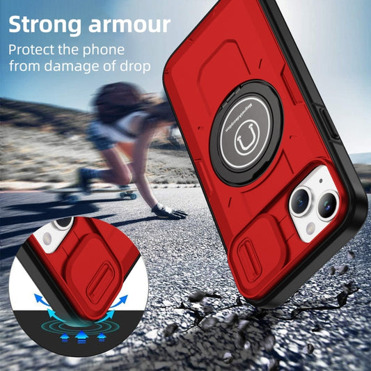For iPhone 14 Plus Sliding Camshield TPU Hybrid PC Magnetic Holder Phone Case(Red)