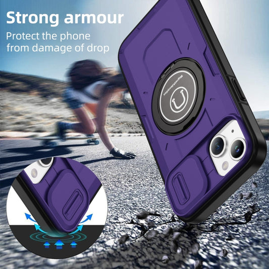 For iPhone 14 Plus Sliding Camshield TPU Hybrid PC Magnetic Holder Phone Case(Purple)