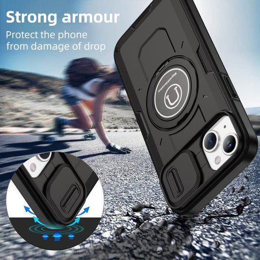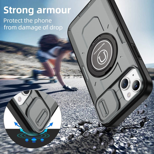 For iPhone 14 Plus Sliding Camshield TPU Hybrid PC Magnetic Holder Phone Case(Black)