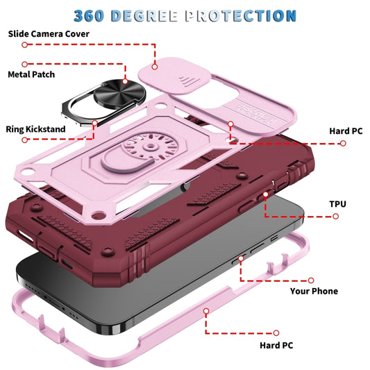 For iPhone 14 Plus Sliding Camera Cover Design TPU + PC Protective Phone Case (Pink+Dark Red)