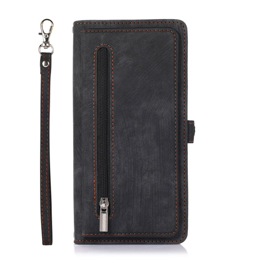 For iPhone 15 Plus Zipper Card Slot Buckle Wallet Leather Phone Case(Black)