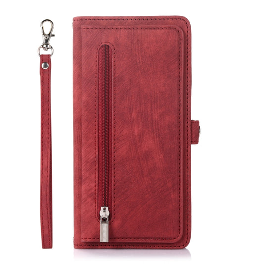 For iPhone 15 Plus Zipper Card Slot Buckle Wallet Leather Phone Case(Red)