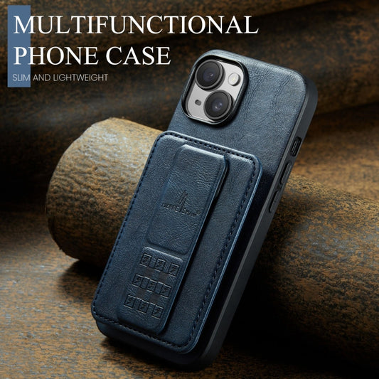 For iPhone 15 Plus R-JUST RJ-61 Electroplating Frosted TPU + PC Phone Case with Holder(Blue)