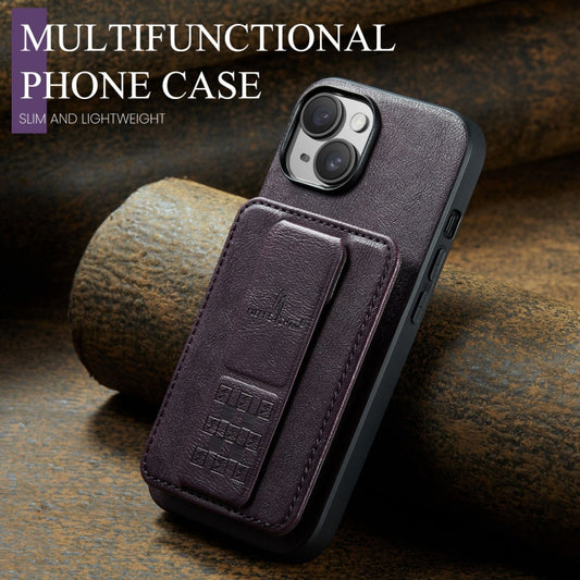 For iPhone 15 Plus Fierre Shann Oil Wax Cow Leather Card Holder Back Phone Case(Purple)