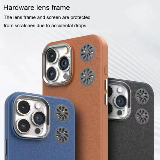 For iPhone 15 Pro Leather Textured Fan Hollow Cooling MagSafe Magnetic Phone Case(Blue)