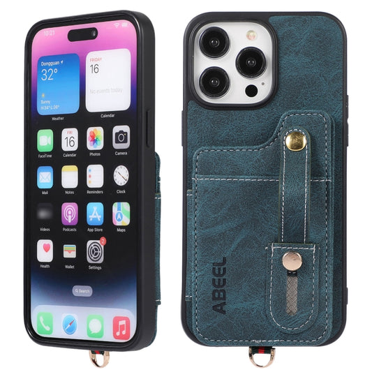 For iPhone 15 Pro ABEEL Litchi Texture Card Bag PU Phone Case(Blue)
