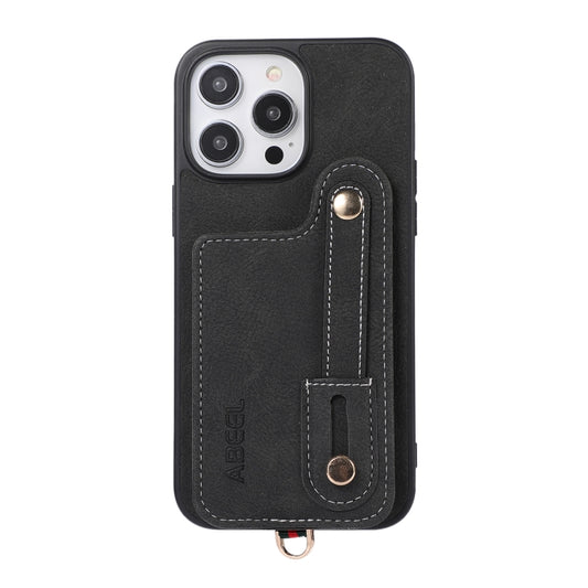 For iPhone 15 Pro ABEEL Litchi Texture Card Bag PU Phone Case(Black)