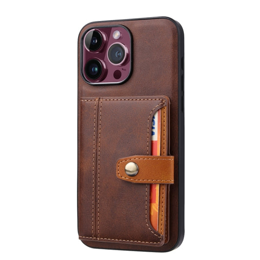 For iPhone 15 Pro Calfskin Card Slot TPU + PU Phone Case(Brown)