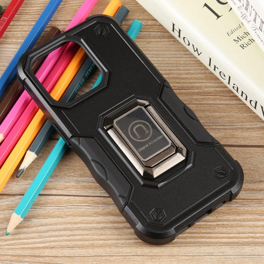 For iPhone 15 Pro Ring Holder Non-slip Shockproof Armor Phone Case(Black)