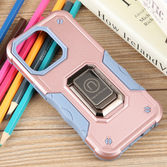 For iPhone 15 Pro Ring Holder Non-slip Shockproof Armor Phone Case(Rose Gold)