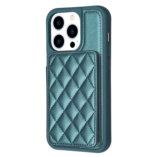For iPhone 15 Pro BF25 Square Plaid Card Bag Holder Phone Case(Green)