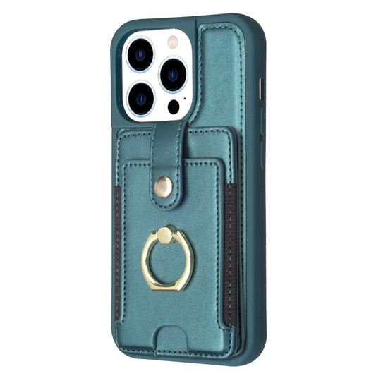 For iPhone 15 Pro BF27 Metal Ring Card Bag Holder Phone Case(Green)