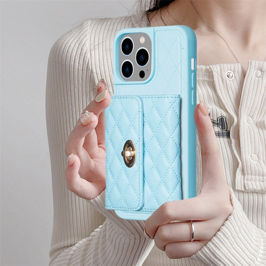 For iPhone 15 Pro Horizontal Wallet Rhombic Leather Phone Case(Blue)