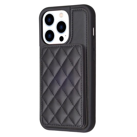 For iPhone 15 Pro BF25 Square Plaid Card Bag Holder Phone Case(Black)
