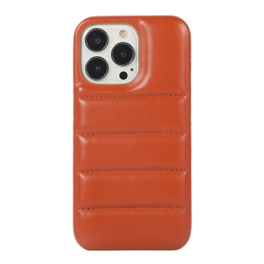 For iPhone 15 Pro Down Jacket Airbag Shockproof Phone Case(Brown)
