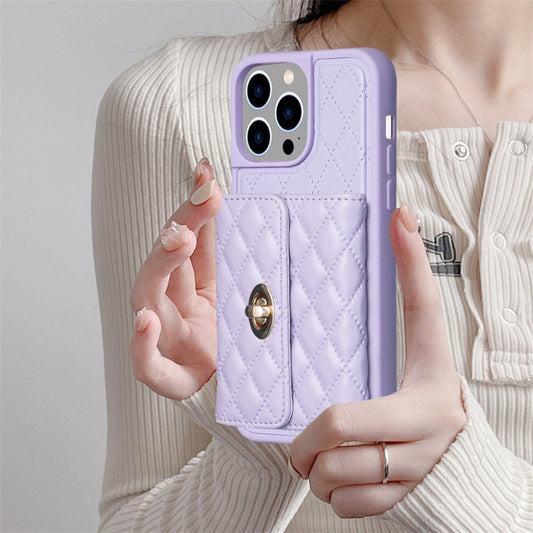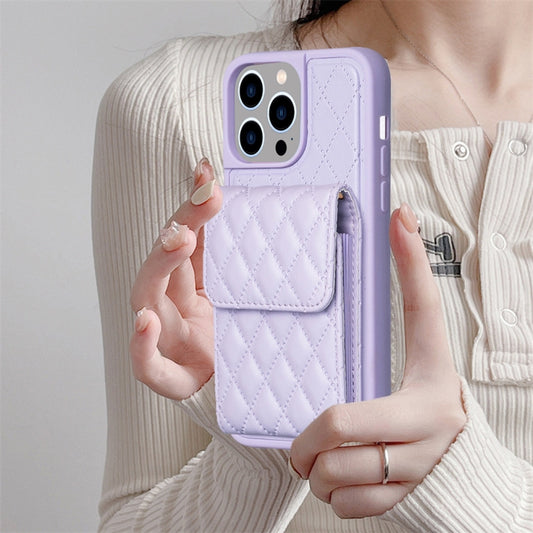 For iPhone 15 Pro Vertical Wallet Rhombic Leather Phone Case(Purple)