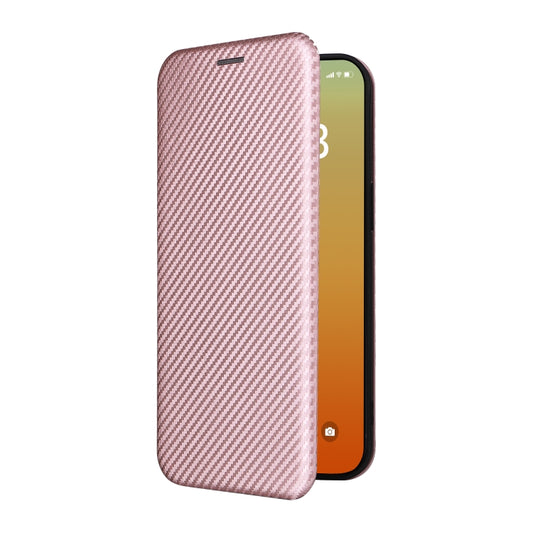 For iPhone 15 Pro Carbon Fiber Texture Flip Leather Phone Case(Pink)