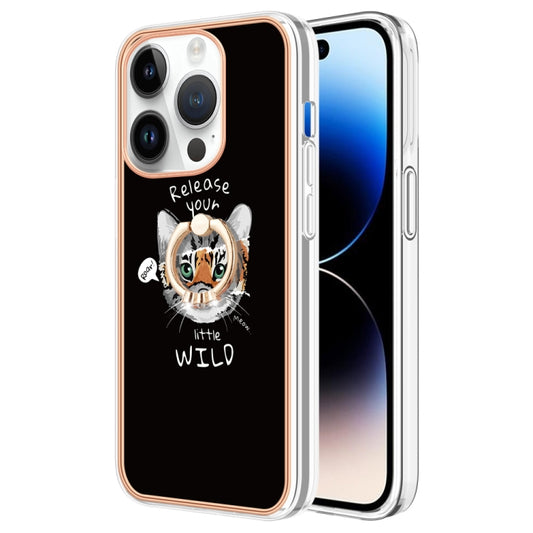 For iPhone 15 Pro Electroplating Dual-side IMD Phone Case with Ring Holder(Totem Elephant)