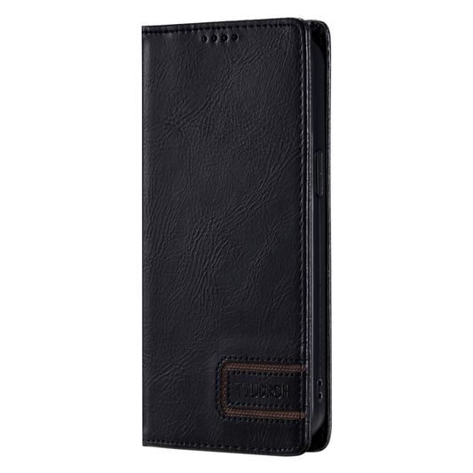 For iPhone 15 Pro TTUDRCH RFID Retro Texture Magnetic Leather Phone Case(Black)