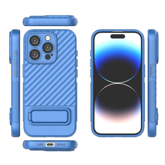 For iPhone 15 Pro Wavy Texture TPU Phone Case with Lens Film(Blue)