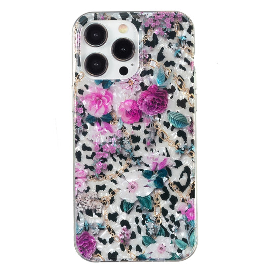 For iPhone 15 Pro IMD Shell Pattern TPU Phone Case(Leopard Flower)