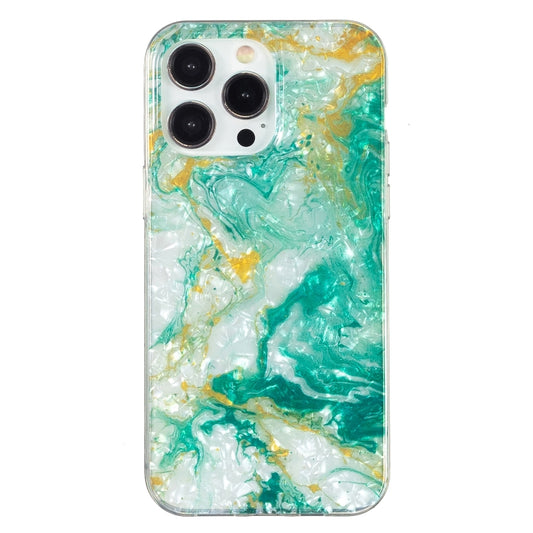 For iPhone 15 Pro IMD Shell Pattern TPU Phone Case(Green Marble)