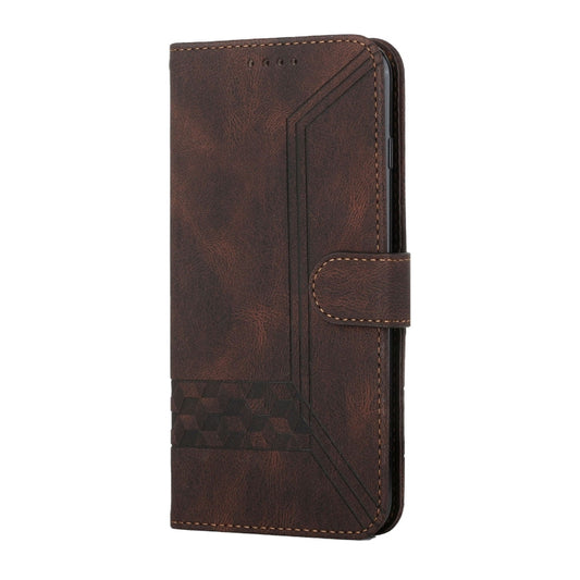 For iPhone 15 Pro Cubic Skin Feel Flip Leather Phone Case(Brown)