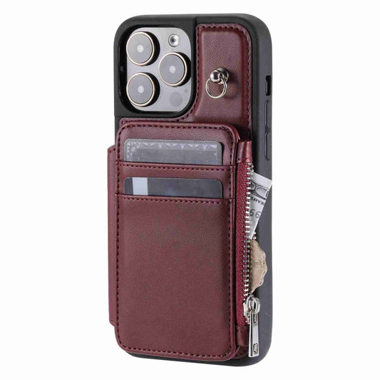 For iPhone 15 Pro Zipper Card Slots RFID Phone Case(Wine Red)