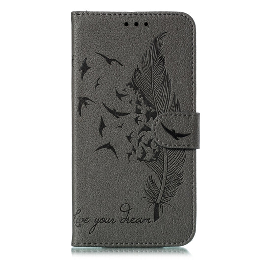 For iPhone 15 Pro Feather Pattern Litchi Texture Leather Phone Case(Gray)