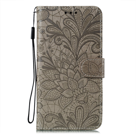 For iPhone 15 Pro Lace Flower Embossing Flip Leather Phone Case(Grey)