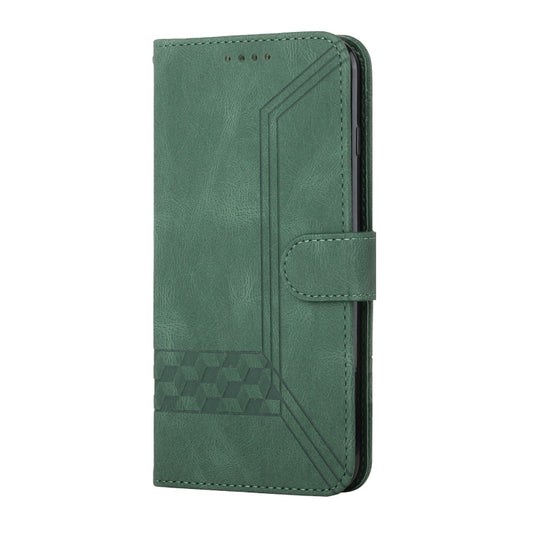 For iPhone 15 Pro Cubic Skin Feel Flip Leather Phone Case(Green)