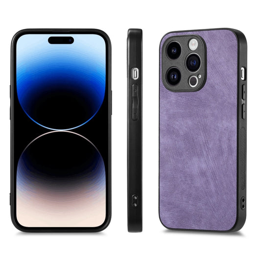 For iPhone 15 Pro Vintage Leather PC Back Cover Phone Case(Purple)