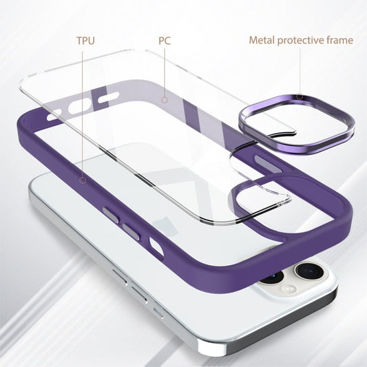 For iPhone 15 Pro Gold Shield 2 in 1 PC + TPU Shockproof Phone Case(Dark Purple)