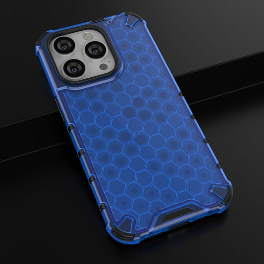 For iPhone 15 Pro Lanyard Honeycomb Phone Case(Blue)