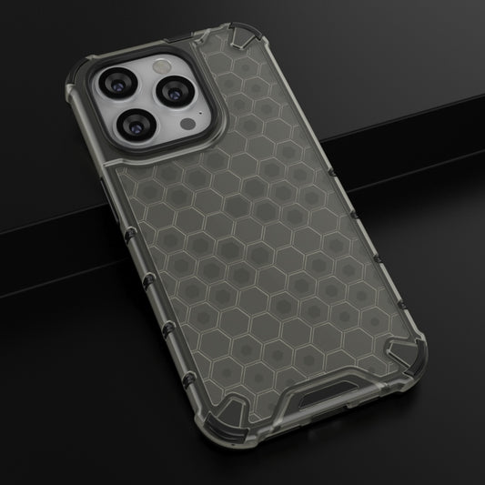 For iPhone 15 Pro Lanyard Honeycomb Phone Case(Black)