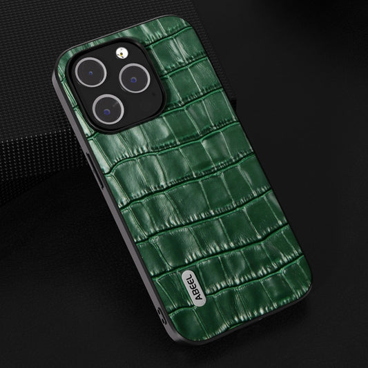 For iPhone 15 Pro ABEEL Crocodile Texture Genuine Leather Phone Case(Green)