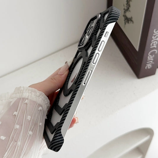 For iPhone 15 Pro Borderless Carbon Fiber Lens Protection Bracket MagSafe Phone Case(Grey)