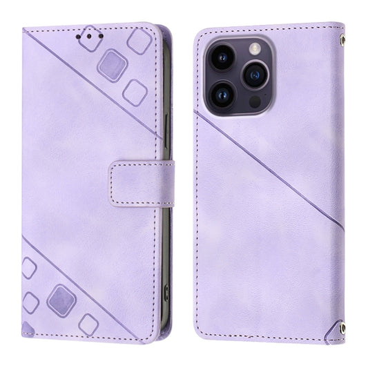 For iPhone 15 Pro Skin-feel Embossed Leather Phone Case(Light Purple)