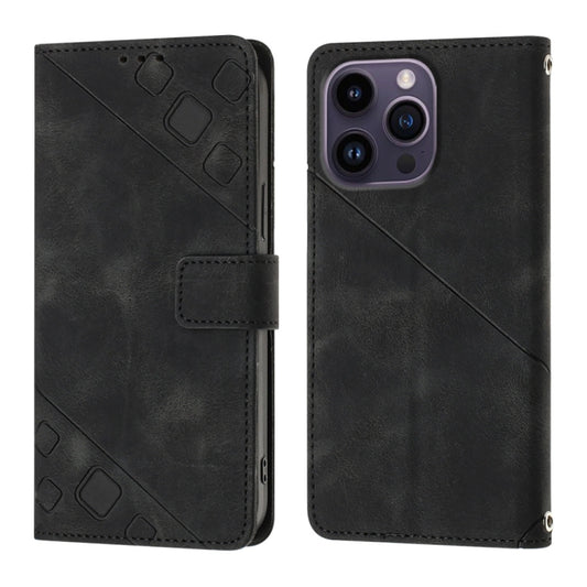 For iPhone 15 Pro Skin-feel Embossed Leather Phone Case(Black)