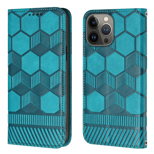 For iPhone 15 Pro Football Texture Magnetic Leather Flip Phone Case(Light Blue)