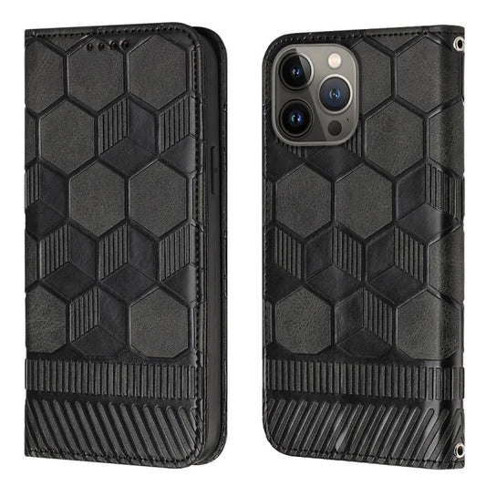 For iPhone 15 Pro Football Texture Magnetic Leather Flip Phone Case(Black)