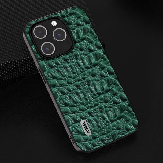 For iPhone 15 Pro ABEEL Genuine Leather Silky Soft Black Edge Phone Case(Green)