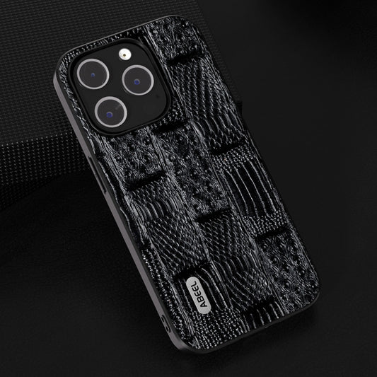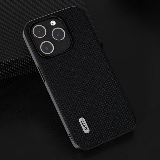 For iPhone 15 Pro ABEEL Genuine Leather Luxury Black Edge Phone Case(Black)